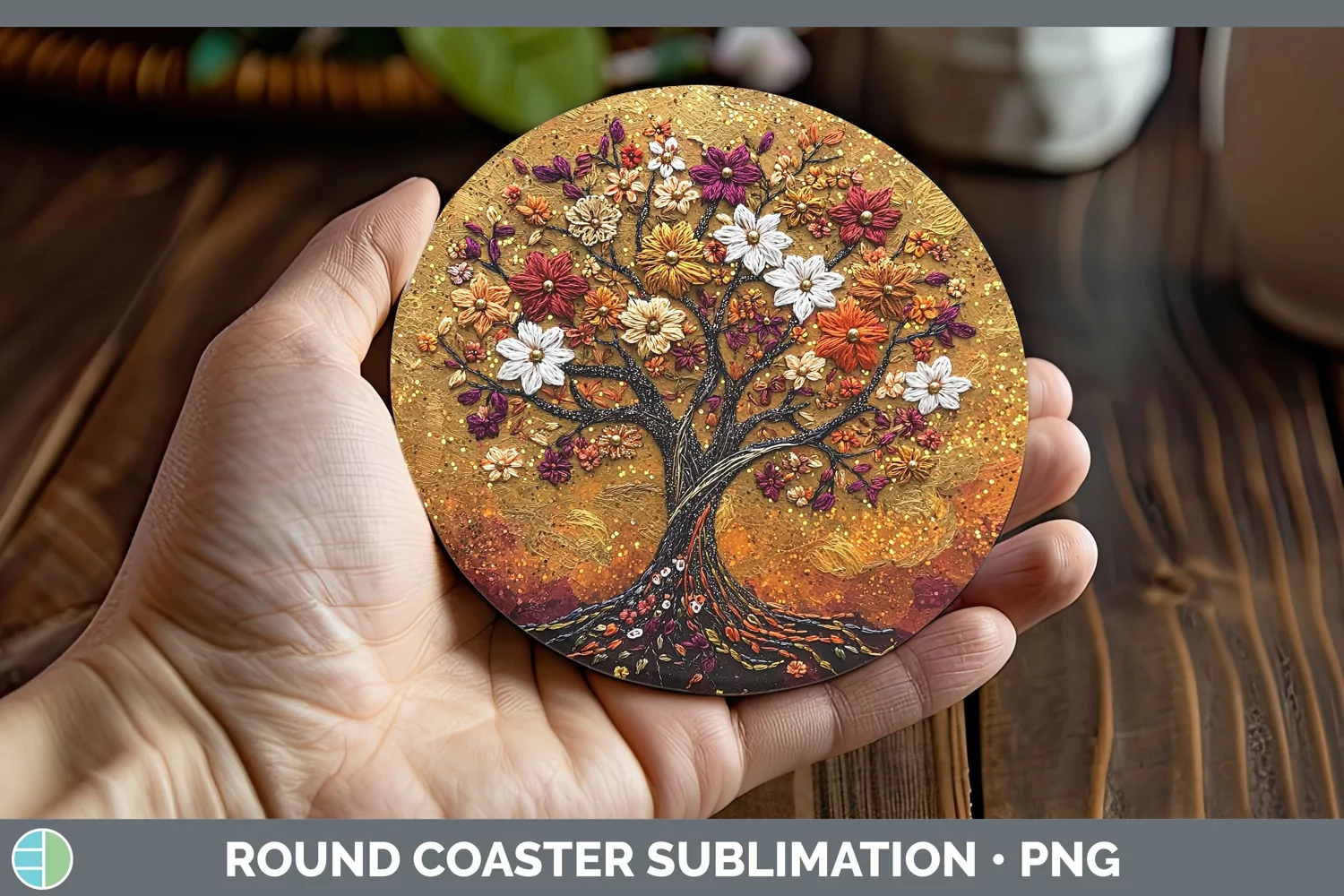 Similar Design Products to Embroidered Tree of Life Round Coaster Sublimation Coaster D
