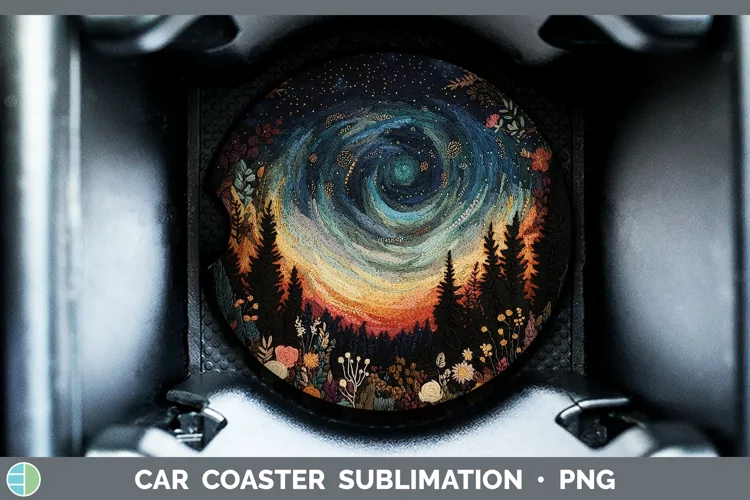Embroidered Northern Lights Car Coaster Sublimation Designs