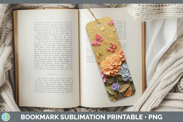 Embroidered Hydrangea Bookmark Sublimation Printable Designs