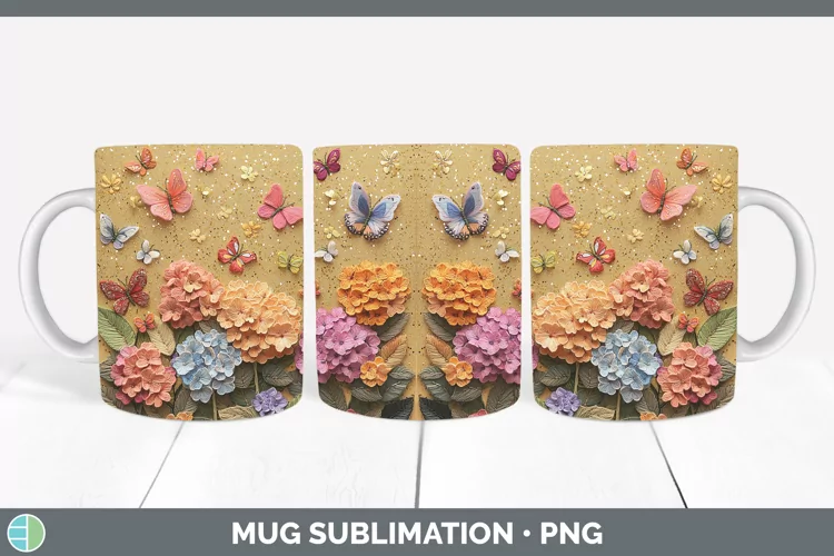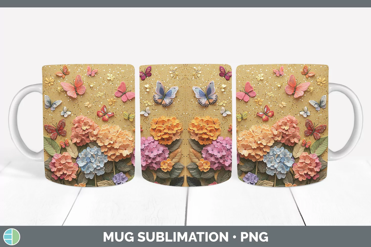 Embroidered Hydrangea Mug Wrap Sublimation Coffee Cup Design