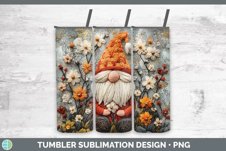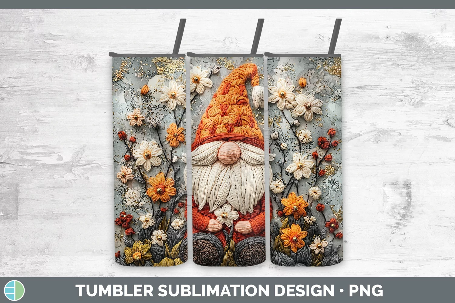 Embroidered Gnome Tumbler Sublimation 20 oz Skinny Tumbler D