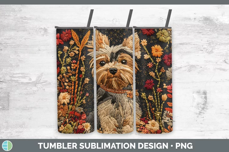 Embroidered Yorkshire Terrier Tumbler Sublimation 20 oz Skin