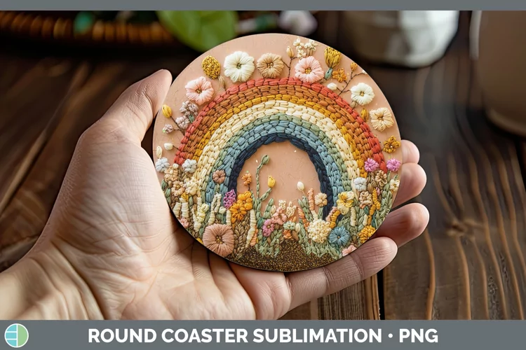 Embroidered Rainbow Round Coaster Sublimation Coaster Design