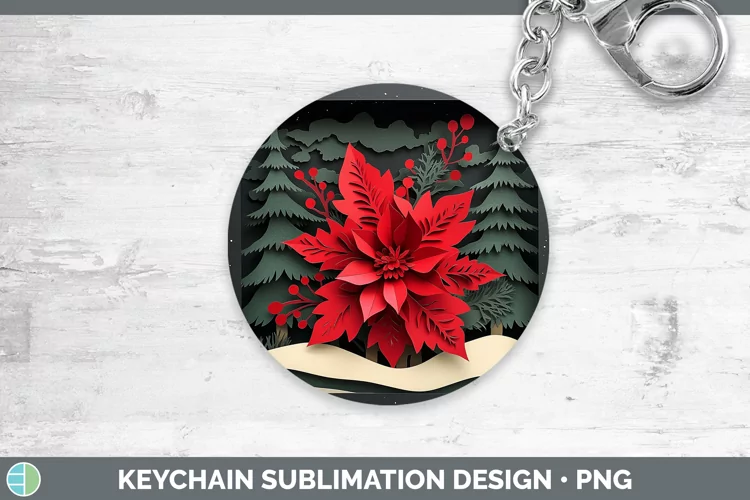3D Poinsettia Keychain Sublimation Keyring Designs