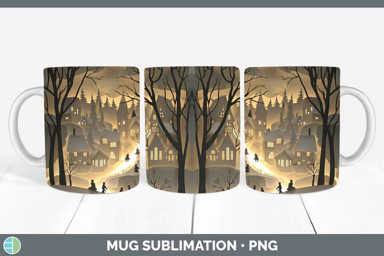 3D Village Mug Wrap Sublimation Coffee Cup Designs