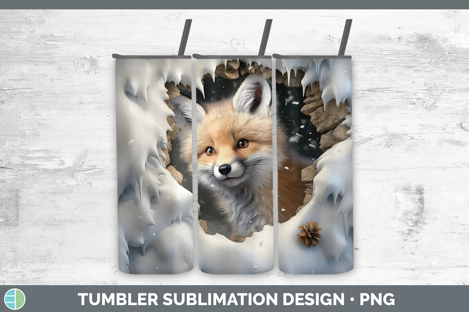 3D Winter Wall Fox Tumbler Sublimation 20 oz Skinny Tumbler