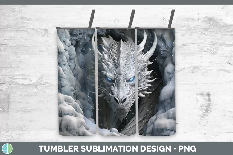 3D Winter Wall Dragon Tumbler Sublimation 20 oz Skinny Tumbl