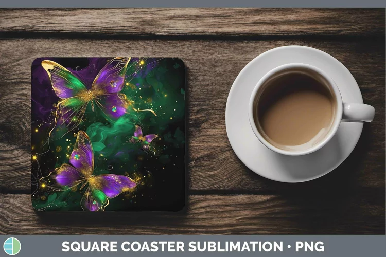 Mardi Gras Glow Butterflies Square Coaster Sublimation Coast
