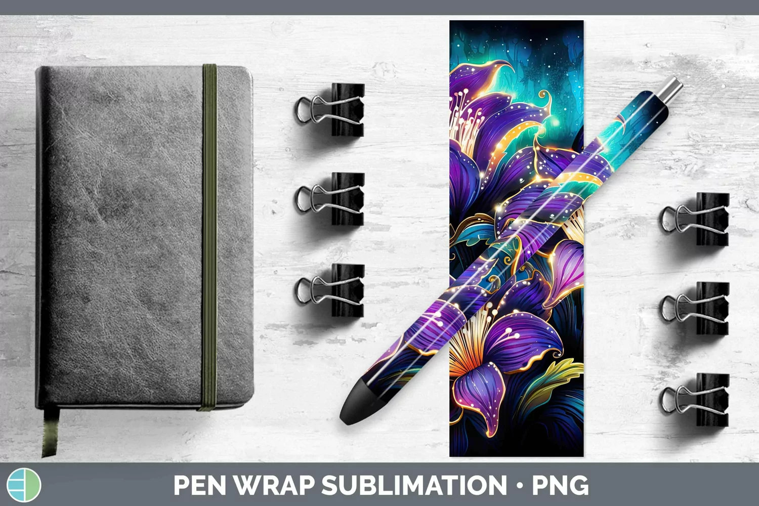 Mardi Gras Glow Flowers Pen Wrap Sublimation Pen Designs
