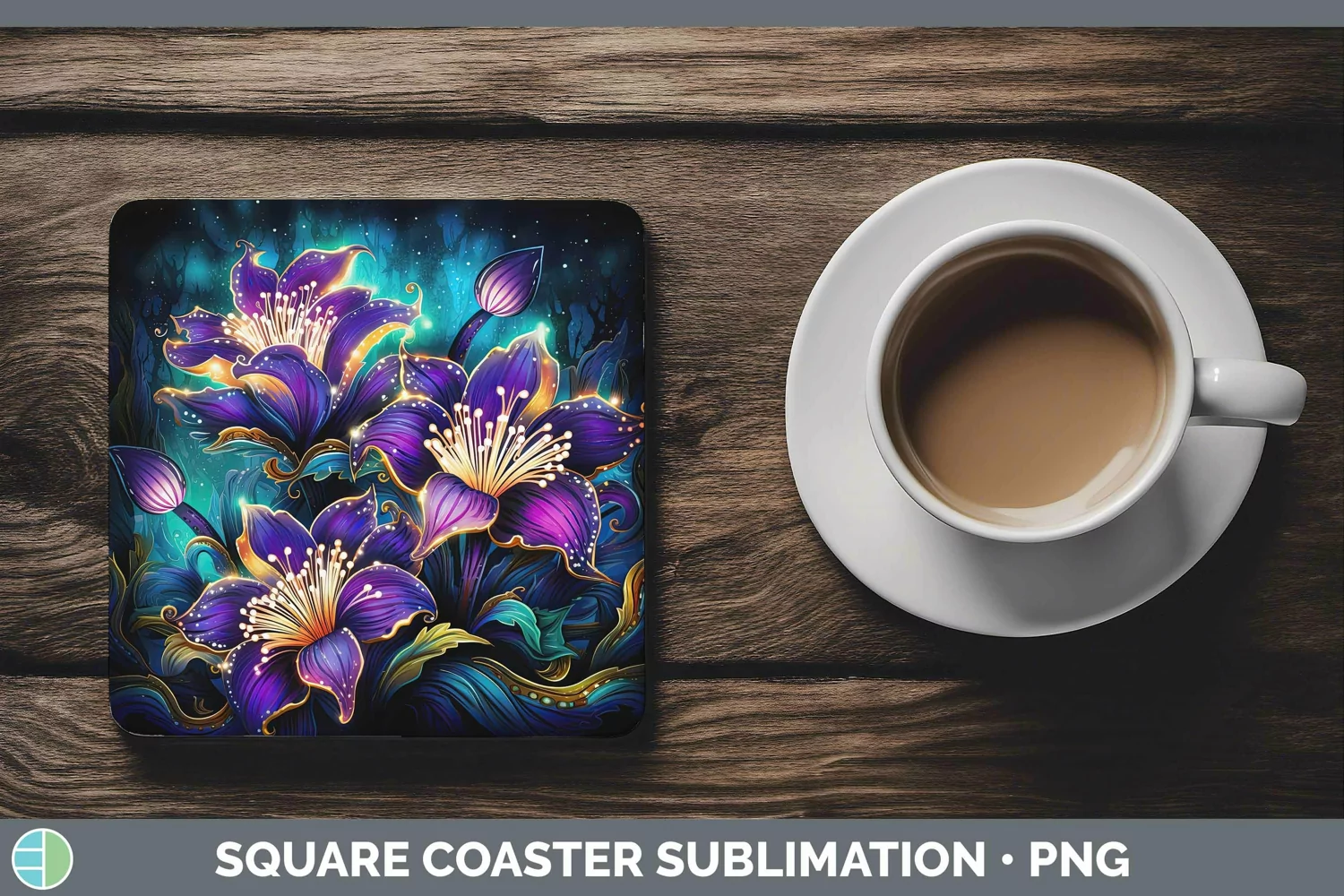 Mardi Gras Glow Flowers Square Coaster Sublimation Coaster D
