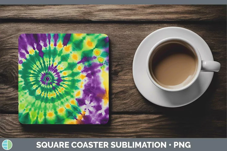 Mardi Gras Tie Dye Square Coaster Sublimation Coaster Design