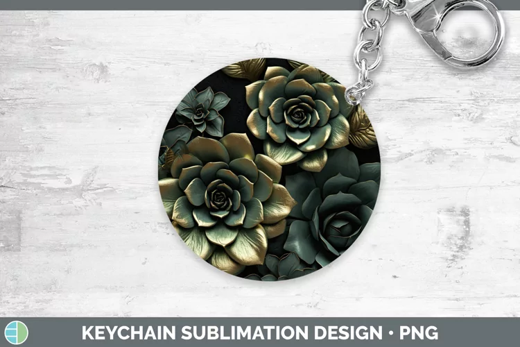 3D Black and Gold Succulent Keychain Sublimation Keyring Des