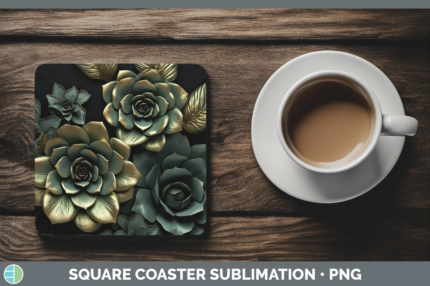 3D Black and Gold Succulent Square Coaster Sublimation Coast