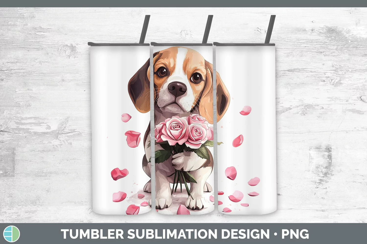 Valentine Rose Dogs Beagle Tumbler Sublimation 20 oz Skinny