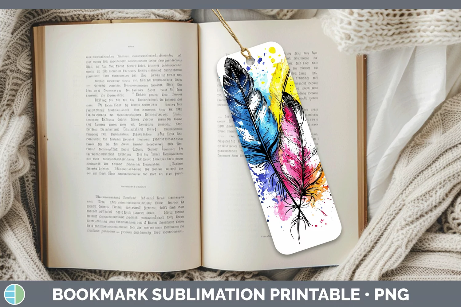 Watercolor Boho Feathers Bookmark Sublimation Printable Desi