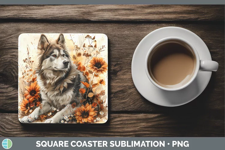 Similar Design Products to Autumn Sunflower Dog Alaskan Malamute Square Coaster Sublima
