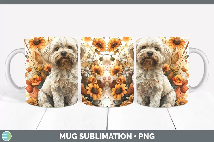 Autumn Sunflower Dog Bichon Frise Mug Wrap Sublimation Coffe