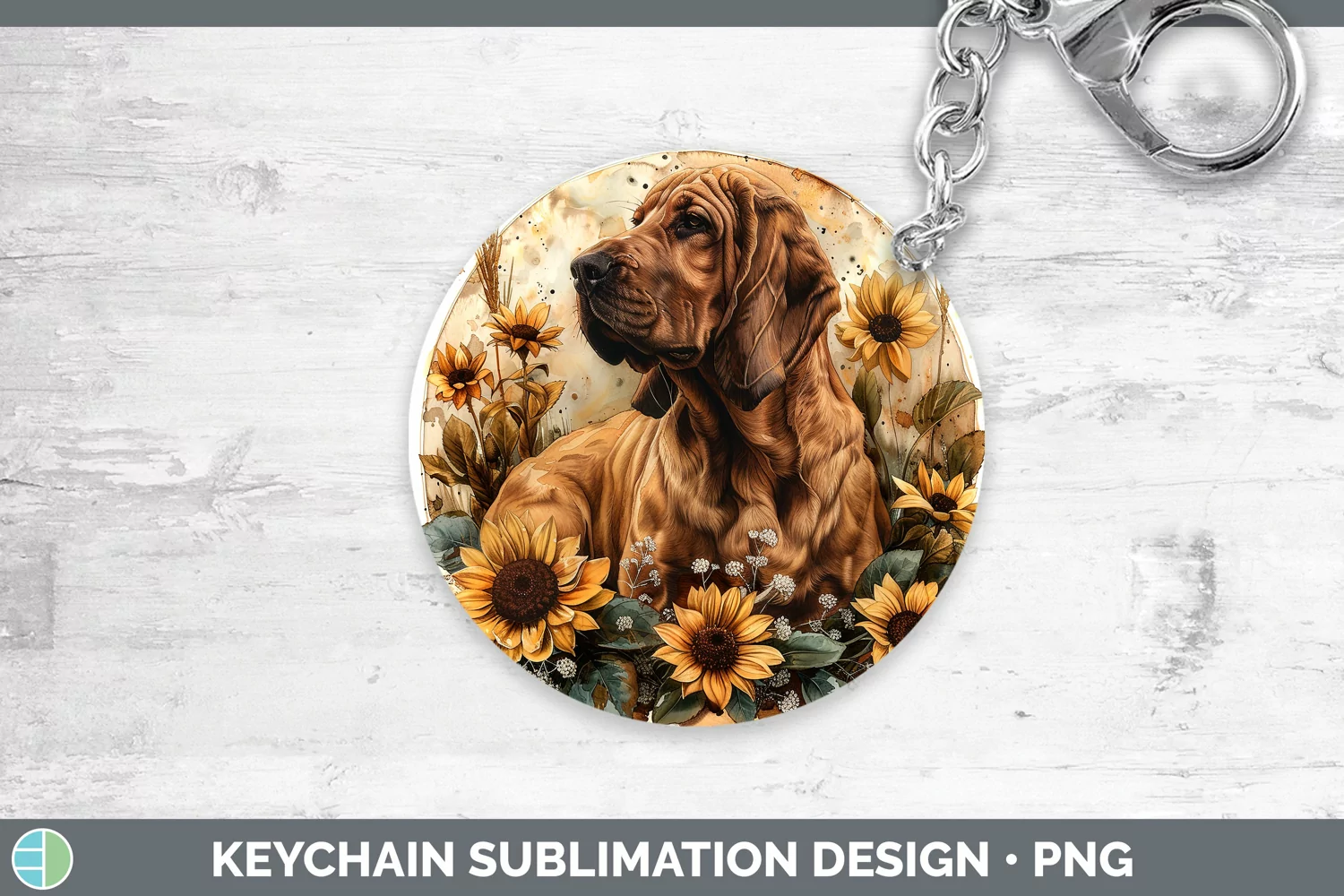 Similar Design Products to Autumn Sunflower Dog Bloodhound Keychain Sublimation Keyring