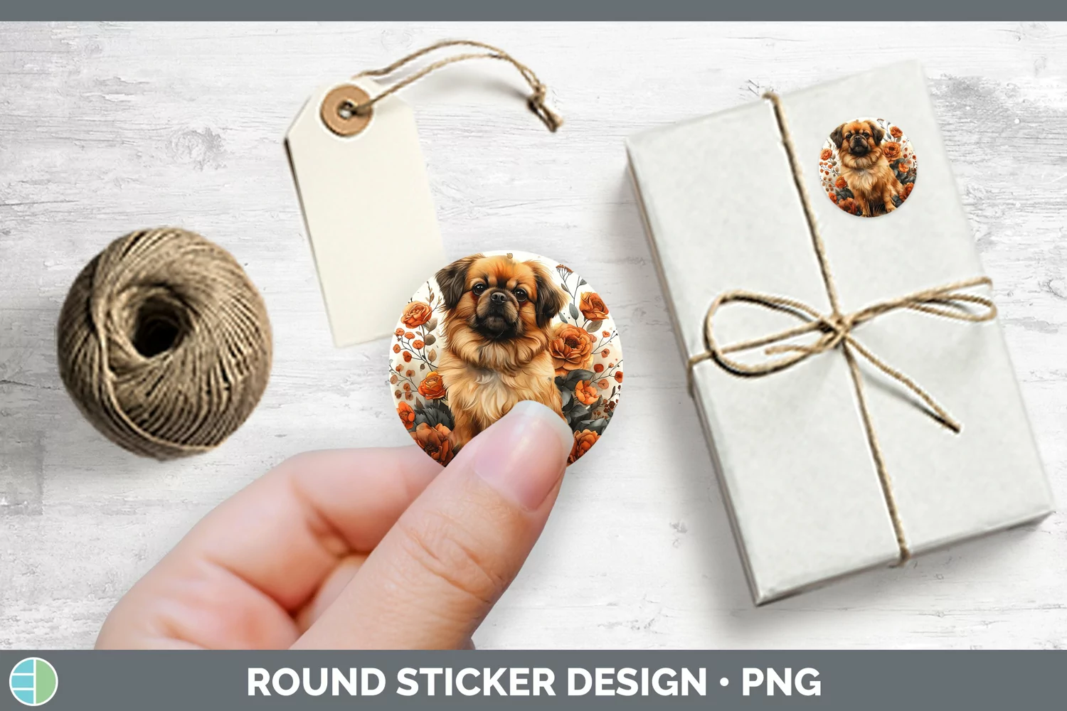 Autumn Sunflower Dog Pekingese Stickers | Round Labels Desig