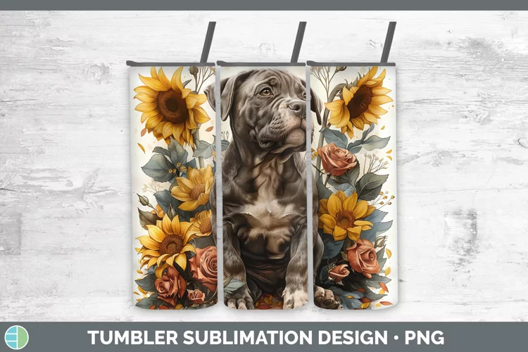 Autumn Sunflower Dog Pit Bull Tumbler Sublimation 20 oz Skin