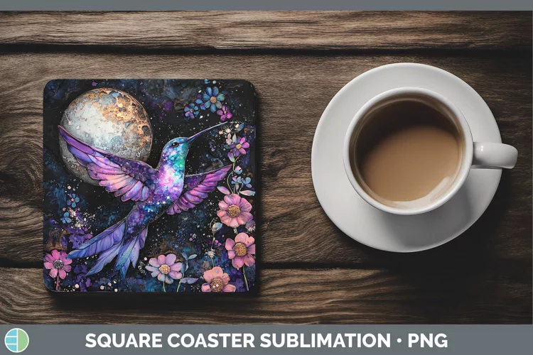 Galaxy Hummingbird Square Coaster Sublimation Coaster Design