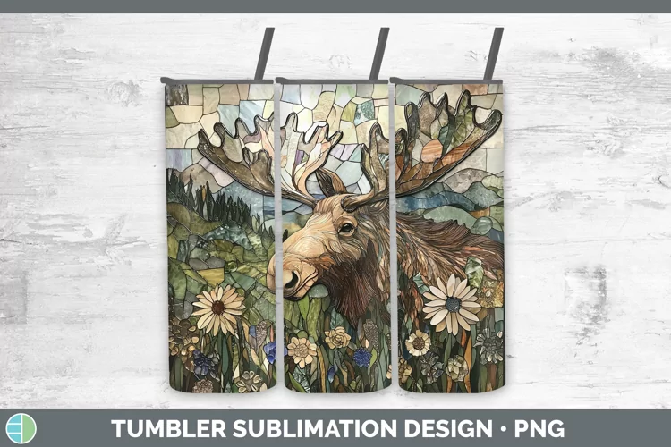 Stained Glass Woodland Moose Tumbler Sublimation 20 oz Skinn