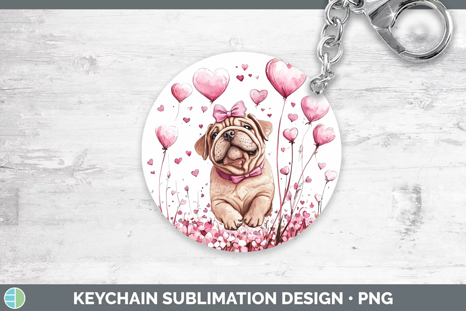 Valentine Dogs Shar Pei Keychain Sublimation Keyring Designs