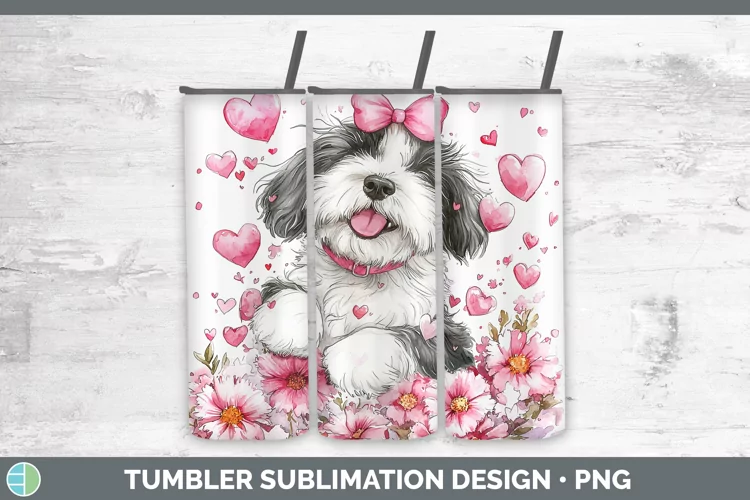 Valentine Dogs Old English Sheepdog Tumbler Sublimation 20 o