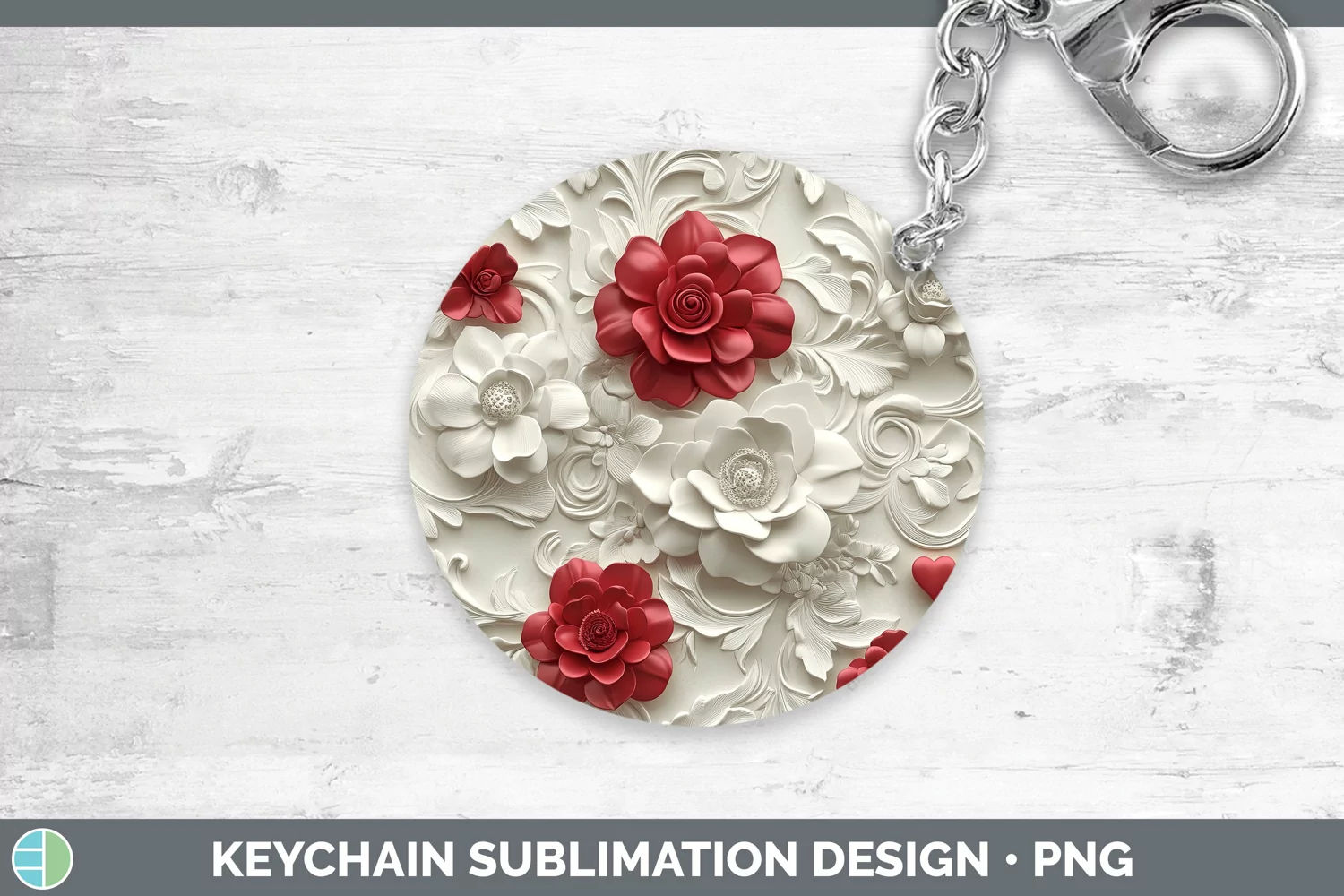 3D Valentine Red Flowers Keychain Sublimation Keyring Design