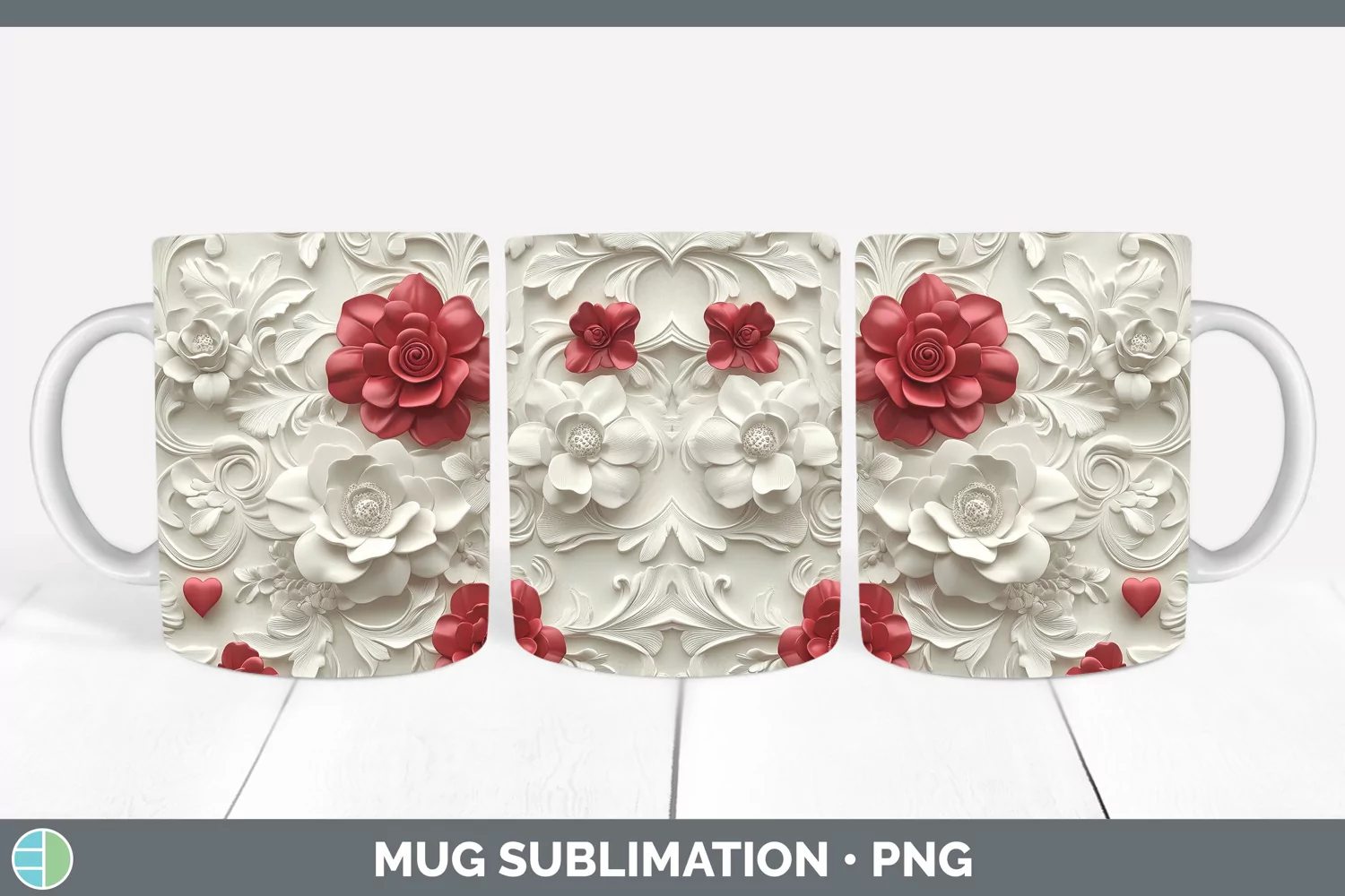 Similar Design Products to 3D Valentine Red Flowers Mug Wrap Sublimation Coffee Cup Des