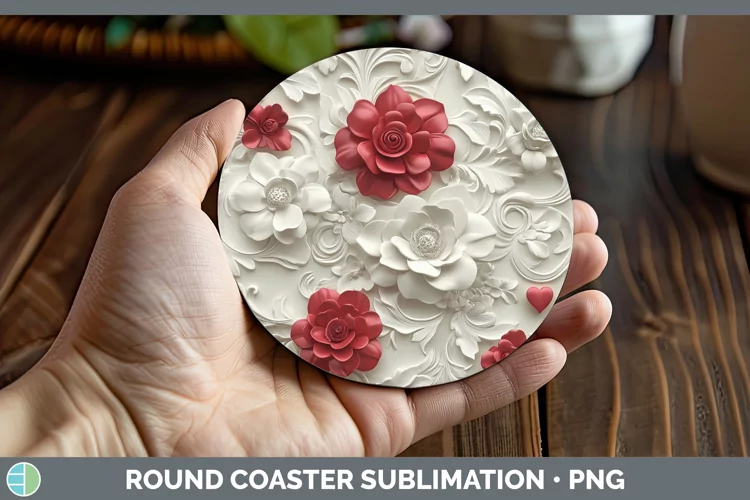 3D Valentine Red Flowers Round Coaster Sublimation Coaster D