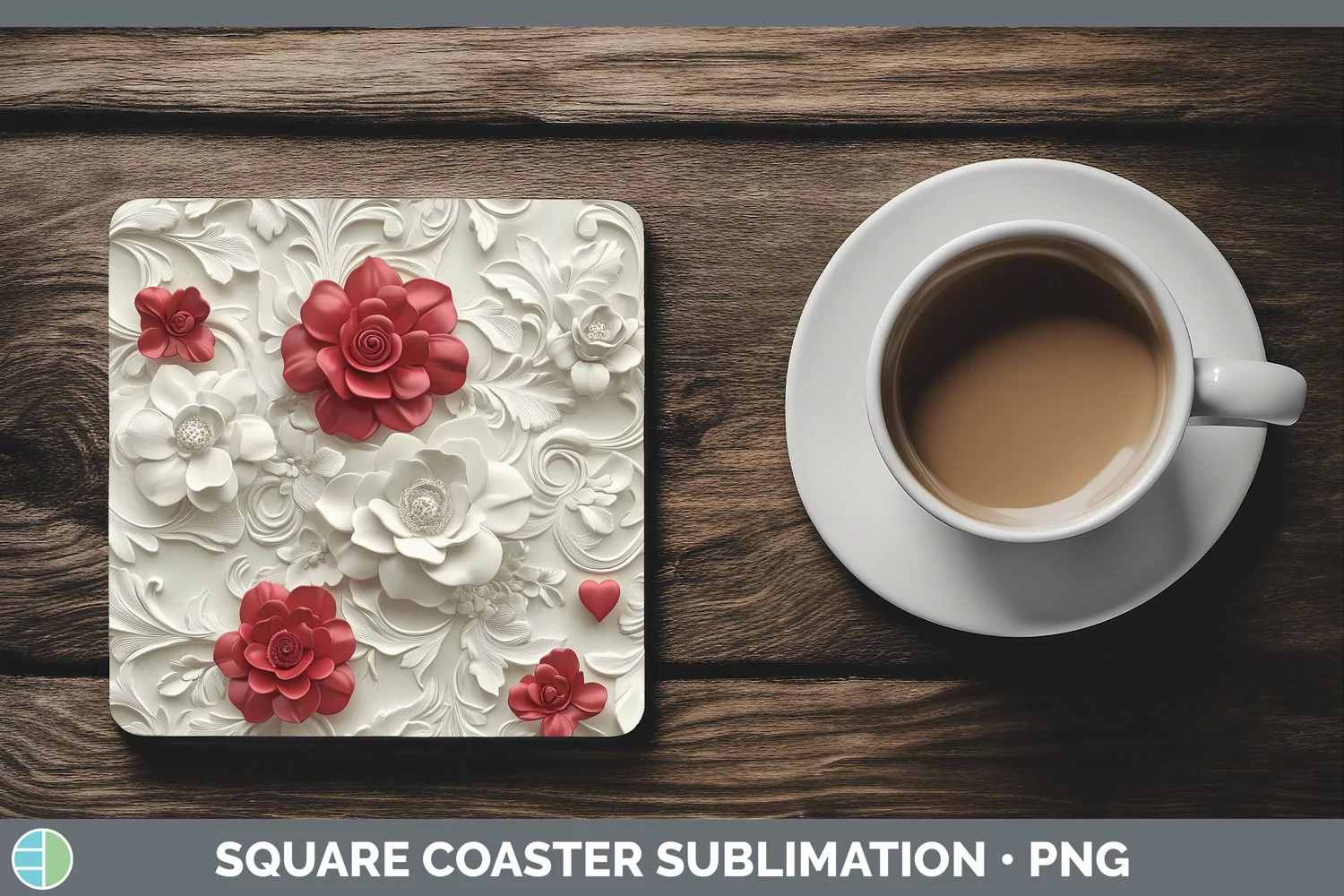 3D Valentine Red Flowers Square Coaster Sublimation Coaster