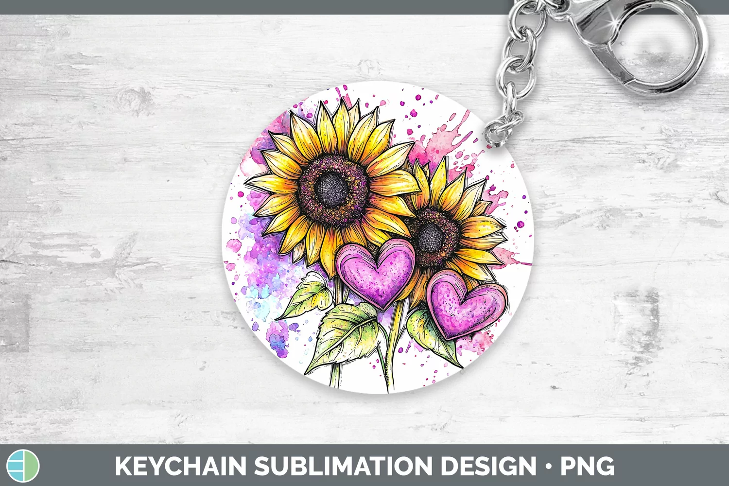 Valentine Splash Sunflower Keychain Sublimation Keyring Desi