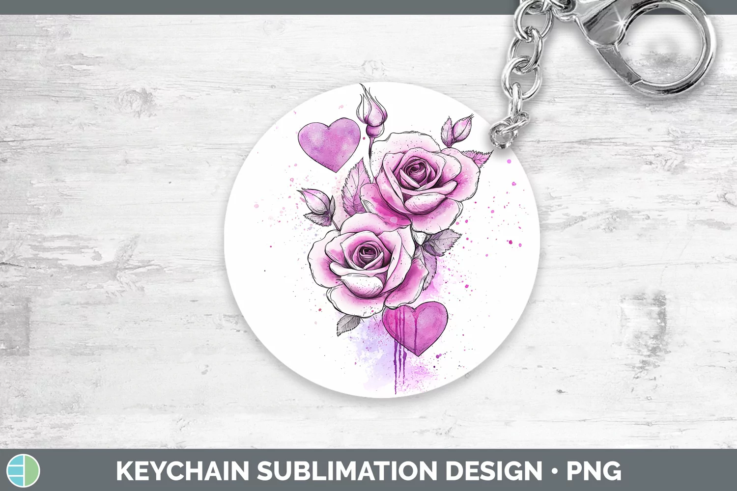 Valentine Splash Rose Keychain Sublimation Keyring Designs
