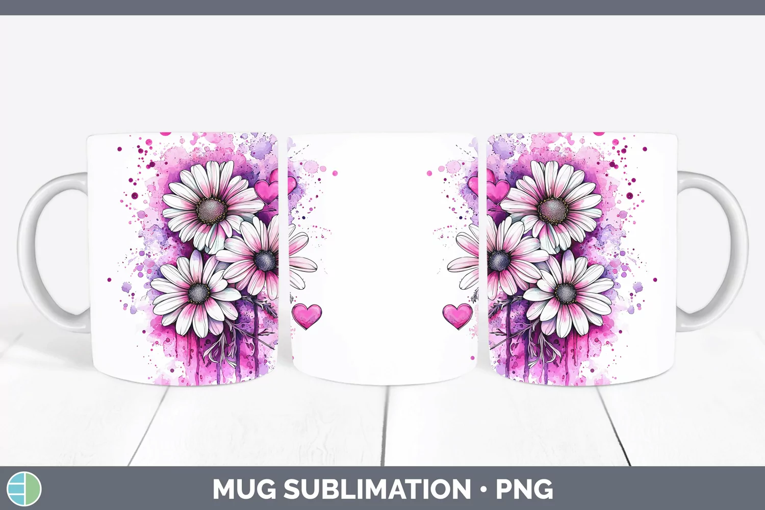 Valentine Splash Daisies Mug Wrap Sublimation Coffee Cup Des