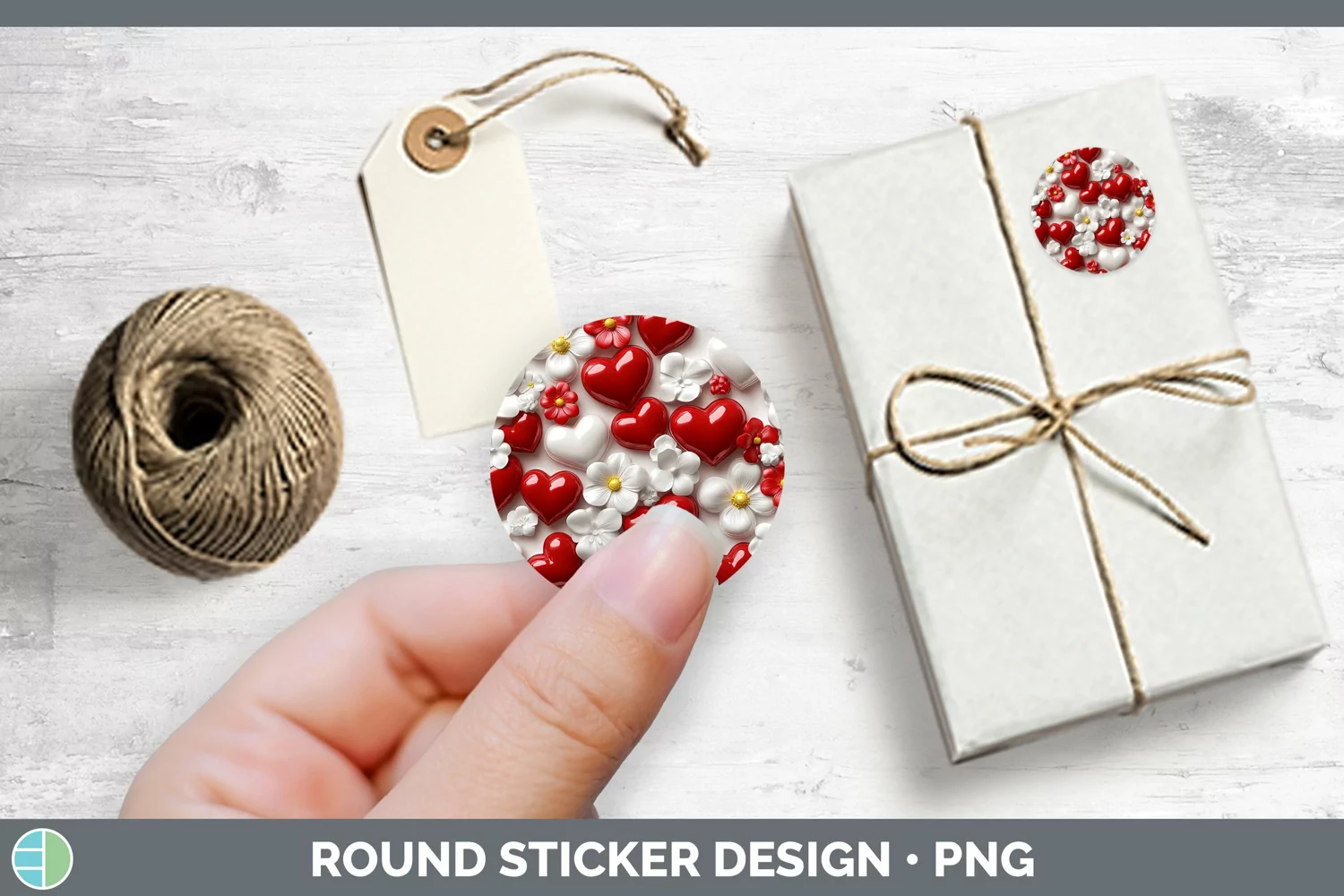 3D Valentine Red Hearts Stickers | Round Labels Designs