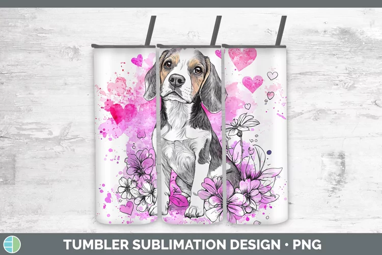 Valentine Splash Dogs Beagle Tumbler Sublimation 20 oz Skinn