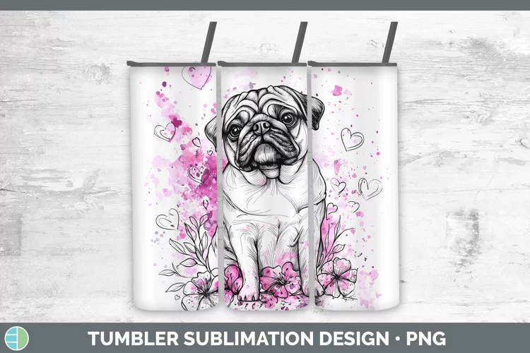 Valentine Splash Dogs Pug Tumbler Sublimation 20 oz Skinny T