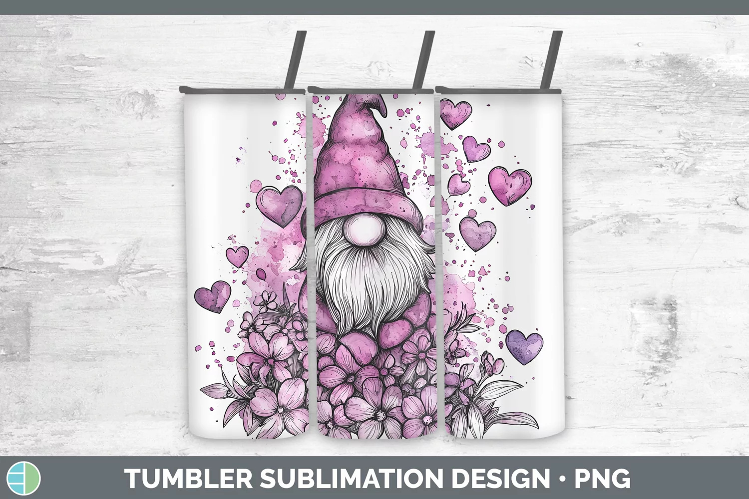 Valentine Splash Gnome Tumbler Sublimation 20 oz Skinny Tumb