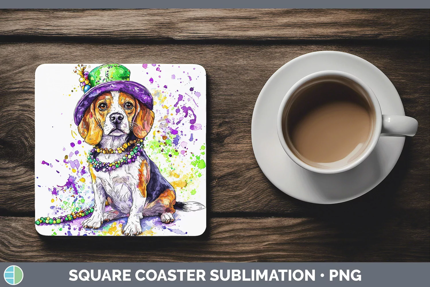 Mardi Gras Splash Dogs Beagle Square Coaster Sublimation Coa