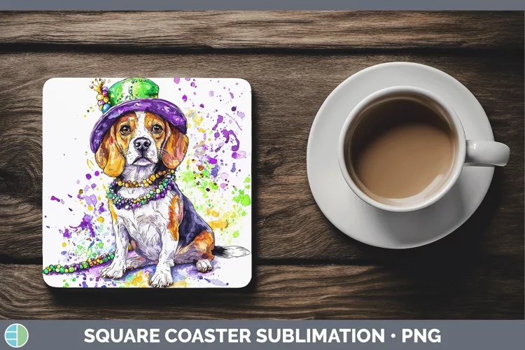 Similar Design Products to Mardi Gras Splash Dogs Beagle Square Coaster Sublimation Coa
