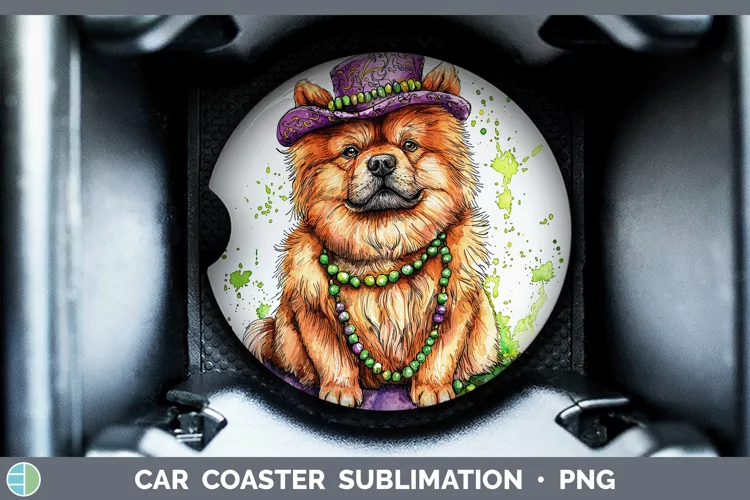 Mardi Gras Splash Dogs Chow Chow Car Coaster Sublimation De
