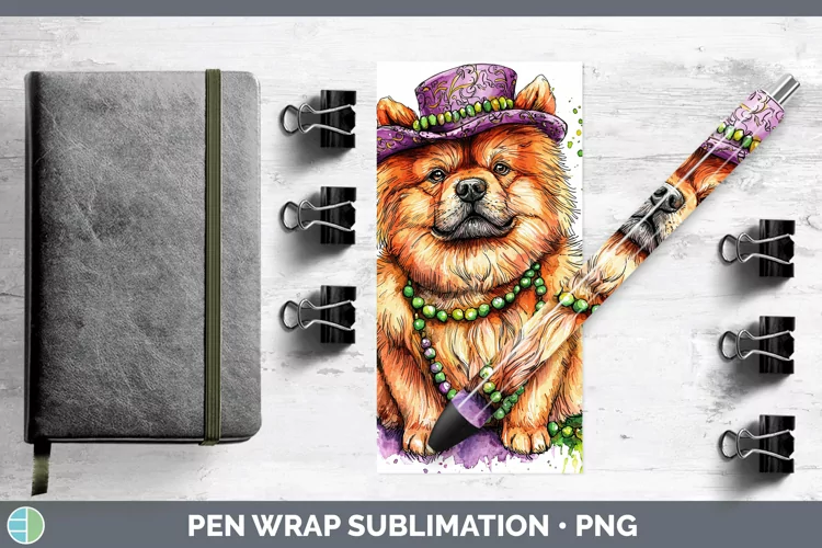 Mardi Gras Splash Dogs Chow Chow Pen Wrap Sublimation Pen De