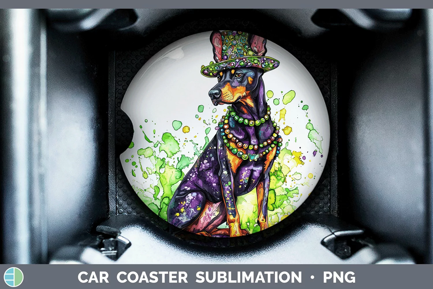 Mardi Gras Splash Dogs Doberman Pinscher Car Coaster Sublima