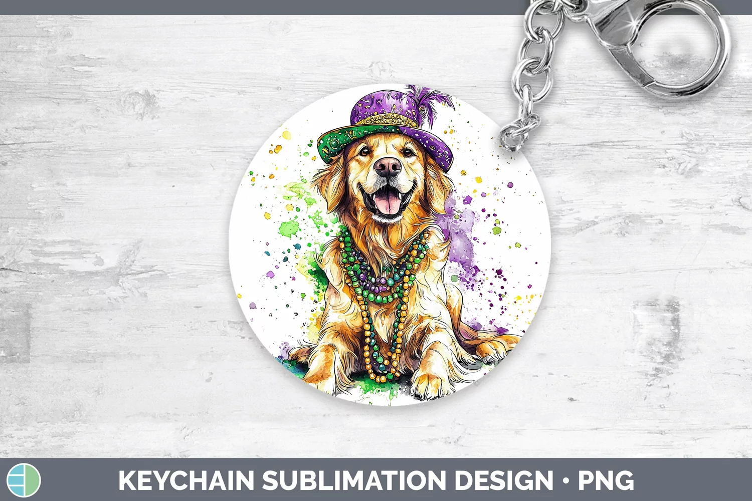 Similar Design Products to Mardi Gras Splash Dogs Golden Retriever Keychain Sublimation
