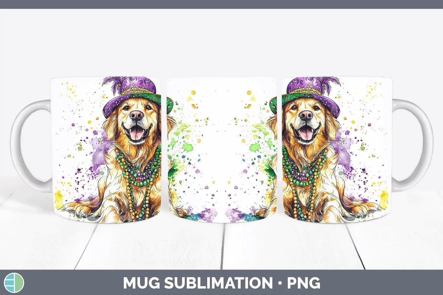 Mardi Gras Splash Dogs Golden Retriever Mug Wrap Sublimation