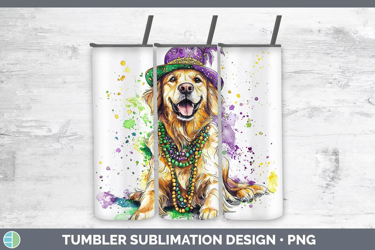 Similar Design Products to Mardi Gras Splash Dogs Golden Retriever Tumbler Sublimation