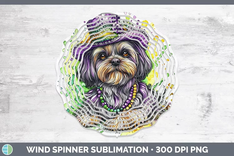 Mardi Gras Splash Dogs Lhasa Apso Wind Spinner Sublimation S