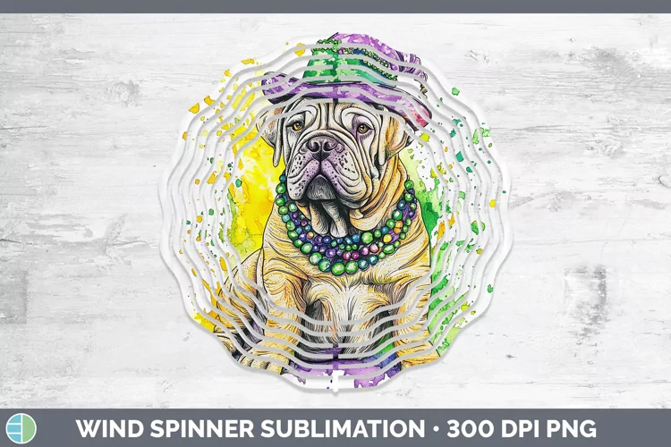 Mardi Gras Splash Dogs Shar Pei Wind Spinner Sublimation Spi