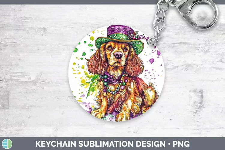 Mardi Gras Splash Dogs Cocker Spaniel Keychain Sublimation K